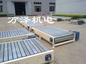 鏈板輸送機以標準鏈板為承載面,由馬達減速機為動力傳動;可通過多列鏈板并行,使鏈板輸送機做的很寬并形成差速,利用多列鏈板的速度差,使多列輸送在無擠壓的情況下變為單列輸送,從而滿足飲料貼標、灌裝、清洗等設備的單列輸送的要求,也可以將兩條鏈板輸送機的頭尾部做成重疊式的混合鏈使得瓶(罐)體處于動態過度狀態,使輸送線上不滯留物料,可以滿足空瓶以及實瓶壓力和無壓力輸送。